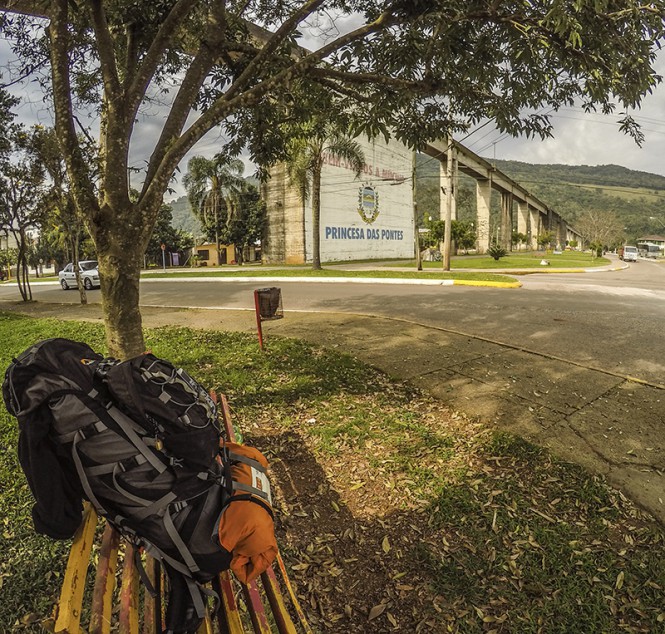 Preparei a mochila, com todos os equipamentos necessários para passar a noite confortavelmente, sem esquecer a água. Pela manhã do dia 15 de Agosto, parti da cidade de Farroupilha/RS de ônibus com destino a cidade de Muçum/RS, carregando comigo apenas a mochila cargueira e meu espirito aventureiro. Durante a viagem de ônibus passei por Bento Gonçalves/RS, uma cidade bela que proporcionava uma linda vista do Vale dos Vinhedos, ponto turístico obrigatório para quem passa por ali.