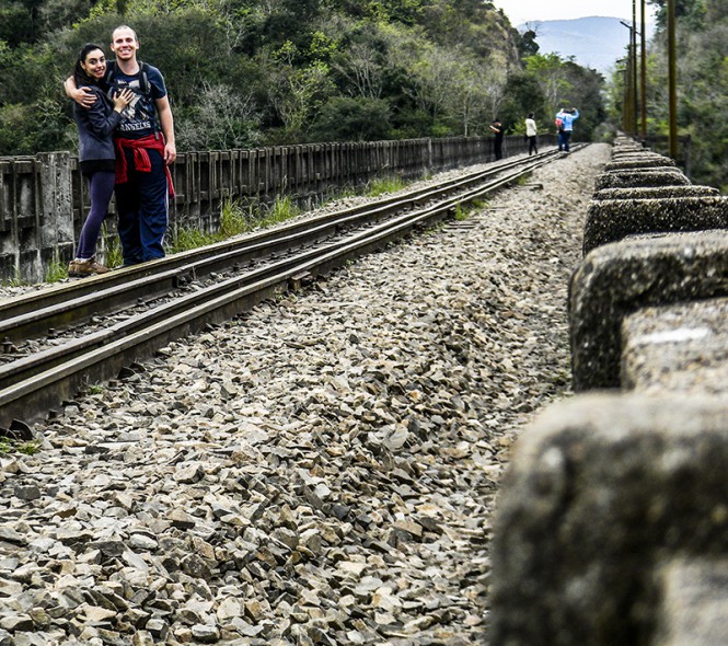 Melhor que apenas caminhar na Ferrovia do Trigo, é poder prestigiar com seus amigos o trem passar em cima do viaduto 11.