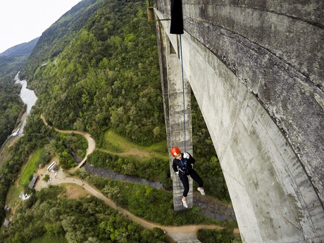 Depois de caminhar e tirar muitas fotos, é hora de descer de rapel 143 metros no Viaduto 13.