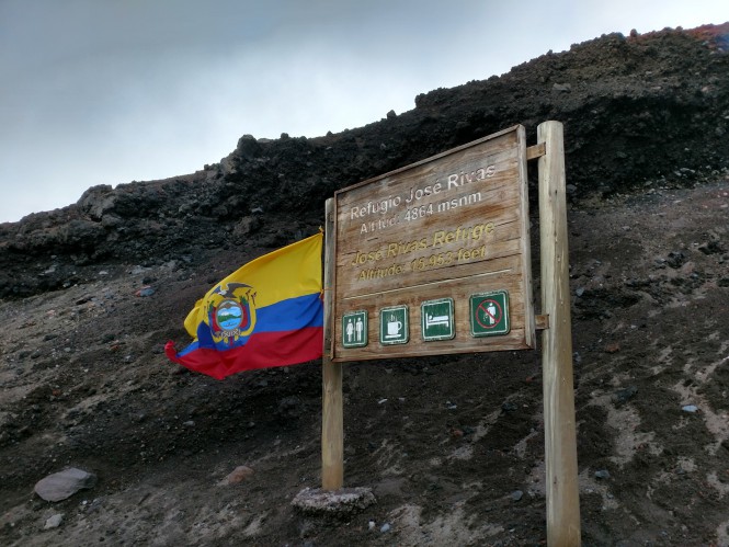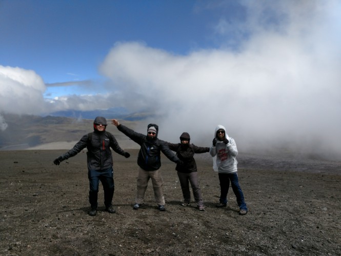 O estacionamento do Cotopaxi que fica à 4400 msnm, e de lá até o primeiro refúgio é uma subida até os 4864 msnm.