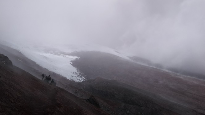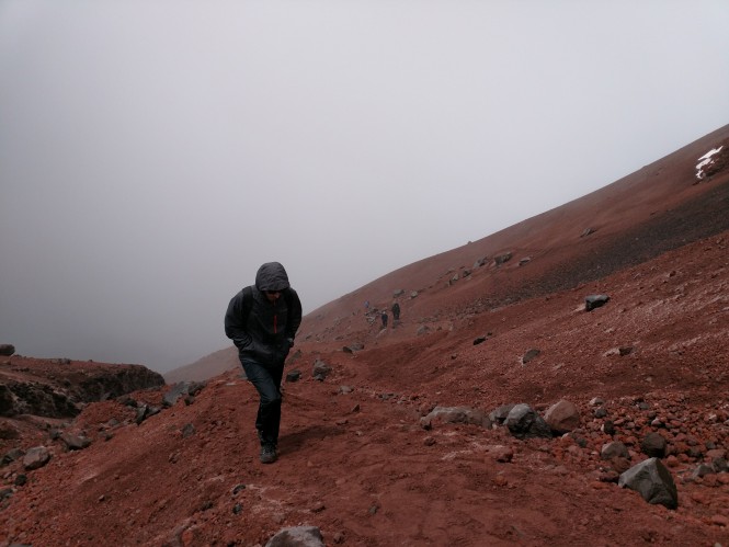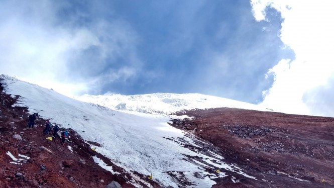 Chegamos ao nível de neve. Chegamos ao imponente Cotopaxi.