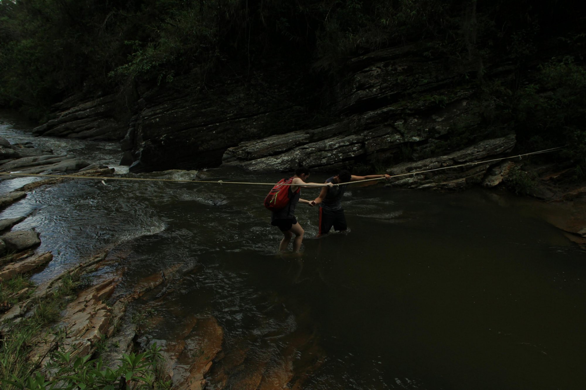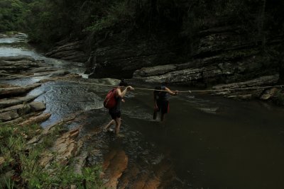 Trilha até a Racha da Zilda, infelizmente um dia antes choveu muito e o nível do rio subiu, não pudemos fazer a trilha até o final.