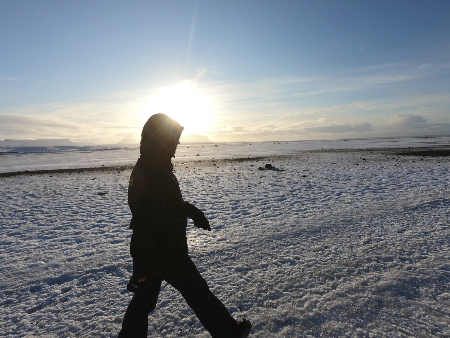 A caminhada é feita numa praia de areia preta, na ocasião estava coberta por neve. É bem plana e super tranquilo chegar até lá. Carros não podem entrar na praia com excessão de um "Monster bus" super equipado com pneus gigantes de neve que pagando te levará e trará de volta hahahaha Mas preferimos fazer a caminhada e aproveitar as paisagens!