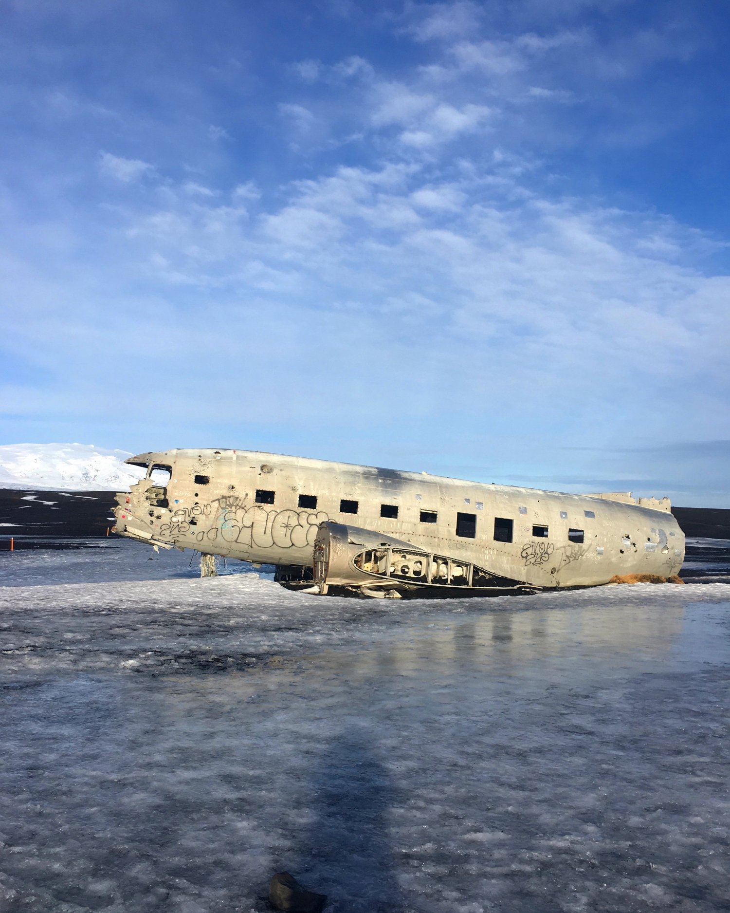 O Dakota Wreck é um avião C-47 SkyTrain da marinha dos Estados Unidos que teve que fazer um pouso forçado nesta praia da Islândia em novembro de 1973. Sete pessoas estavam a bordo e todas sobreviveram.