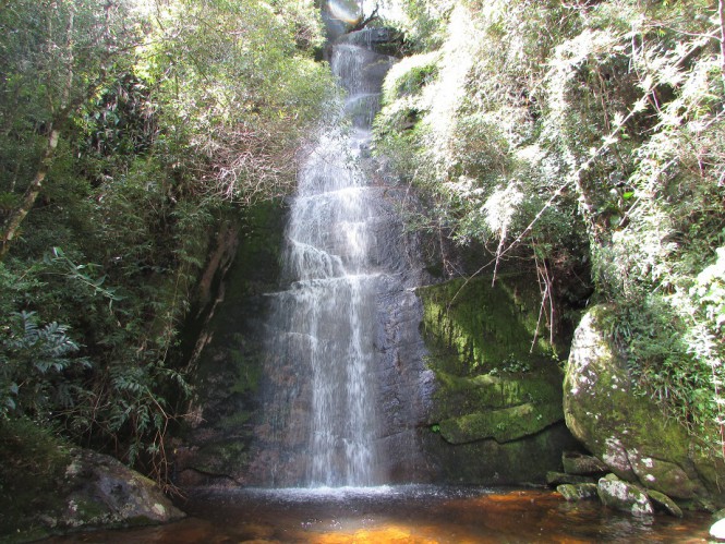 Neste dia nosso grupo era de 5, como é uma trilha que no seu trecho final e complexa, não é aconselhável faze-la com grupos grandes. O dia estava excelente, não estava quente nem frio, temperatura extremamente agradável, começamos nossa subida as 9 horas da manhã. Quando fizer vale a pena dar uma parada na Cachoeira Véu de Noiva para uma refrescada.