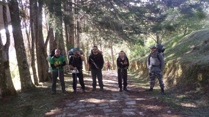 Abastecemos de agua na fazenda e começamos a subir as 9:40 da manhã de quinta-feira 15/6. Tempo meio esquisito no primeiro dia, céu entre nuvens. Vou te falar é uma das subidas mas exigentes que já fiz, se não for a pior, é pé pra cima o tempo todo, não tem refresco, não tem uma descidinha, uma crista, nada, e só meter o pé pra cima, sem parar. Com cerca de uma hora e meia de caminhada chega-se em uma clareira, é um ótimo ponto pra descansar e abastecer de água, visto que é o último ponto de agua antes do Vale do Ruah, ou Rio Vermelho, depende da rota que vá fazer.