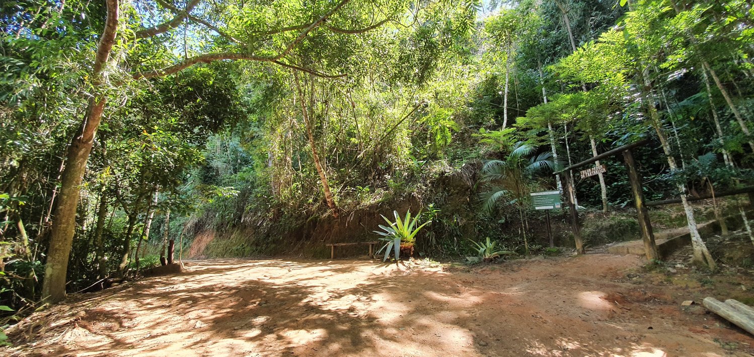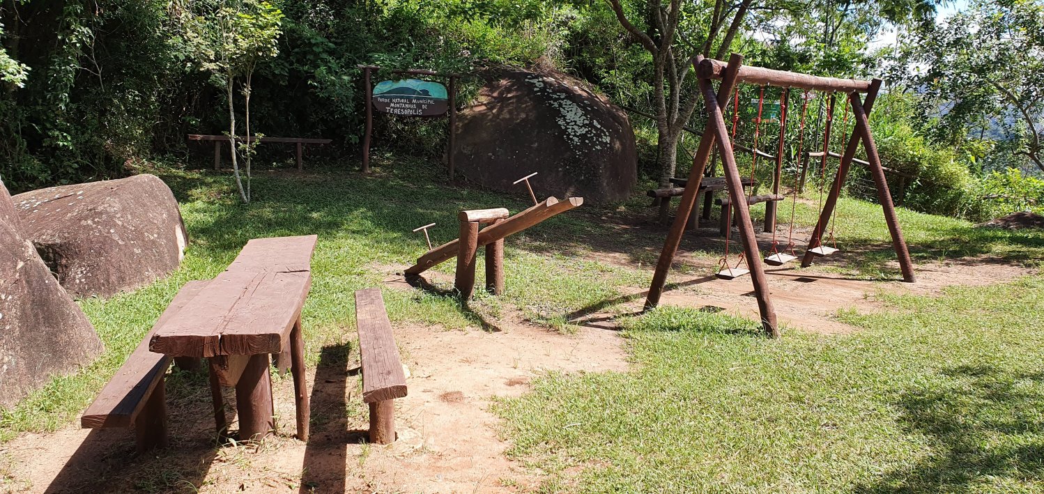 A trilha para a Pedra da Tartaruga começa um pouco mais adiante da entrada, mas preferi não pegar essa trilha e seguir em frente. Neste caso, a estradinha segue até os banheiros e o parquinho.