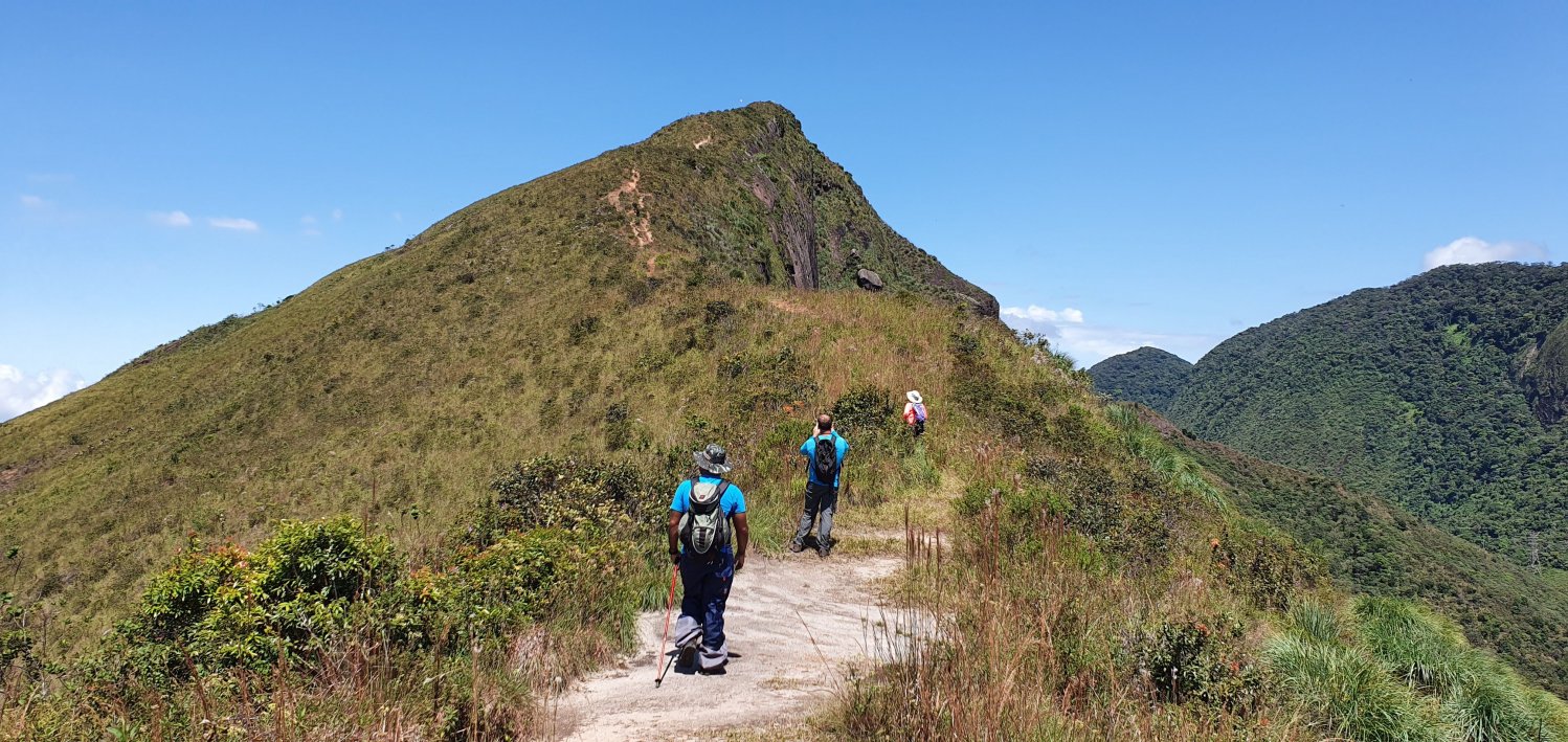 Subindo um pouco mais, atravessamos um pequeno trecho mais plano e com bela paisagem, já que estávamos andando pela crista da montanha.