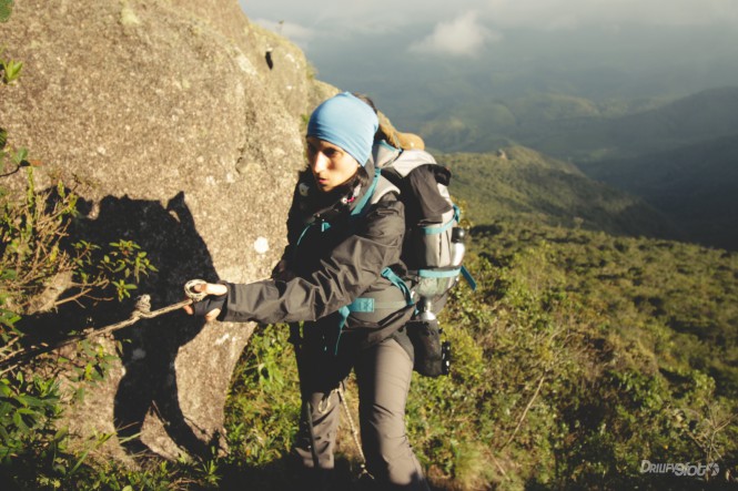 Aos poucos fui me deparando com os paredões de rochas ao meu redor até que chegou o momento que mais temia as escalas com trechos de cordas, meu coração batendo cada vez mais forte e rápido, minhas pernas e braços tremendo, minha mente assustada, mas com muita confiança e muita ajuda de todos do grupo consegui vencer o medo que me atormentava.
