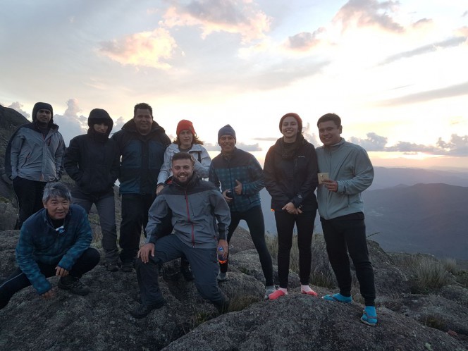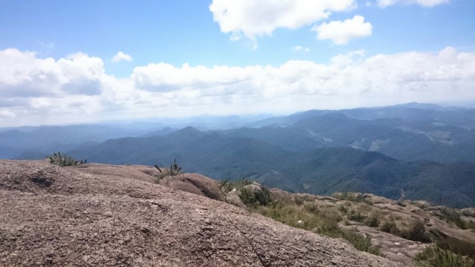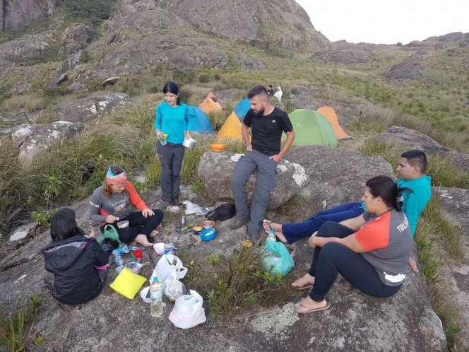 Depois de percorrer 6h de subidas e descidas chegamos ao acampamento para montar as barracas e repor as energias. Por volta das 14h uma parte do grupo começou mais uma trilha rumo ao cume do Marins, conforme ia subindo as rochas, senti um cansaço que me venceu, decidi deixar o grupo, fiquei na rocha filtrando todas as minha emoções e admirando a fascinante paisagem que estava ao meu redor que era banhado por montanhas que se perdiam na linha do horizonte, na minha frente via o nosso acampamento nas minhas costas o grupo no alto do cume.