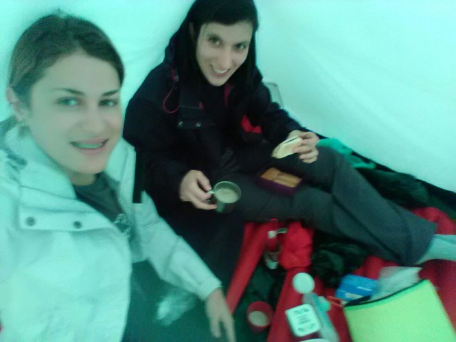 Depois de um café gelado dentro da barraca com Adriane, às 9h iniciamos a descida de baixo de muita chuva e vento, sentia muito frio nesse momento ao ponto de sentir dores em algumas partes do corpo.