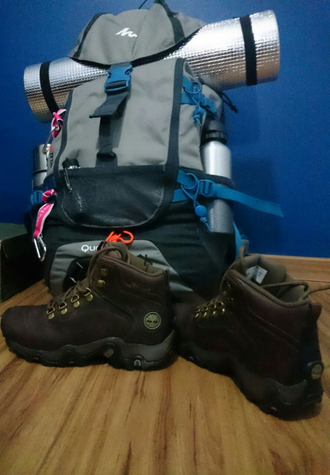 Alimentação suficiente para os dois dias, 3 litros e meio de Água, uma muda de roupa, kit de emergência, lanterna, saco de dormir e isolante térmico, tudo pronto para começar a aventura mais inesquecível da minha vida.