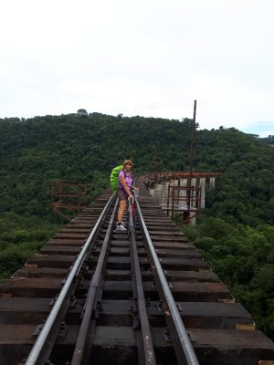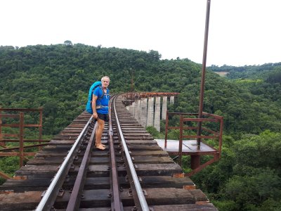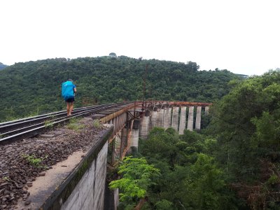 Caminhar pelo trilho da ferrovia do trigo no Rio Grande do Sul, nós foi 54 km em 2 dias