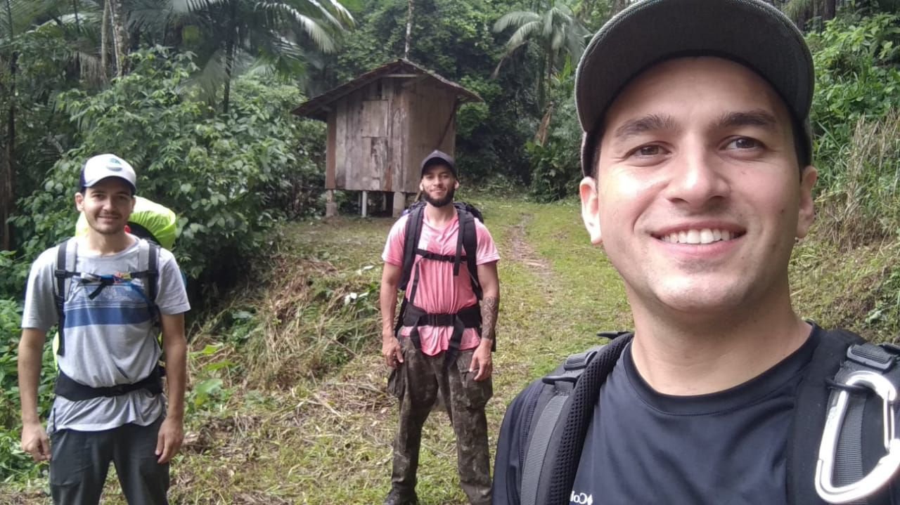 Nosso planejamento feito pelo companheiro de trilha, Diego, era deixar o carro no final do percurso e irmos de Uber até o início do mesmo, algo que já imaginávamos que seria difícil ter Uber ali perto por ser mais interior, o que não imaginávamos era que seria tão difícil encontrar área no celular rsrrs, depois de tentativas frustadas pra tentar conseguir um Uber, fomos apelar para o tradicional e caro por sinal, táxi. Pedimos a um casal que mora na região que ligasse para um táxi, e como não tinhamos outra opção mais barata, o jeito foi juntar o que tínhamos de grana e esperar pelo táxi, que por sinal, demorou mais de 1 hora. Kkkk