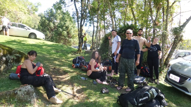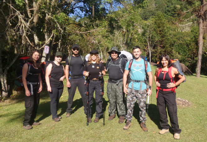 Convidamos nossos filhos e alguns amigos, mas somente puderam nos acompanhar na aventura Tânia, uma amiga com a nossa faixa etária, seus dois filhos Guilherme e Riana, os três com experiência em trilhas, pois fizeram a Ferrovia do Trigo conosco, mas sem experiencia em montanha, e um casal de jovens amigos, Diego e Marina, que não tinham feito nenhuma trilha ainda.