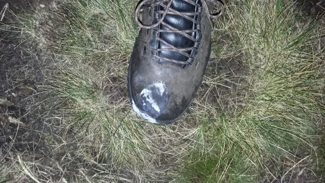 Formou gelo também nas botas que estavam guardadas no avanço da barraca.