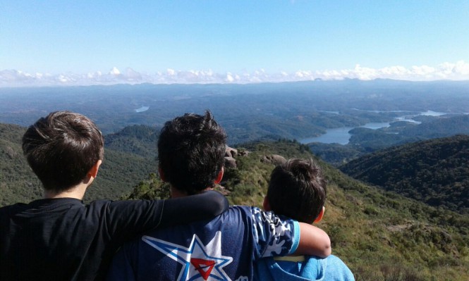 Dava para ver umas pessoas no cume de outros morros e os maluquinhos quase ficaram roucos de tanto gritar.