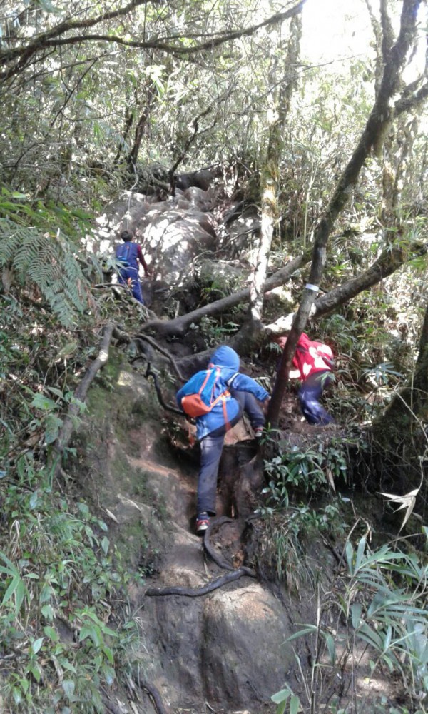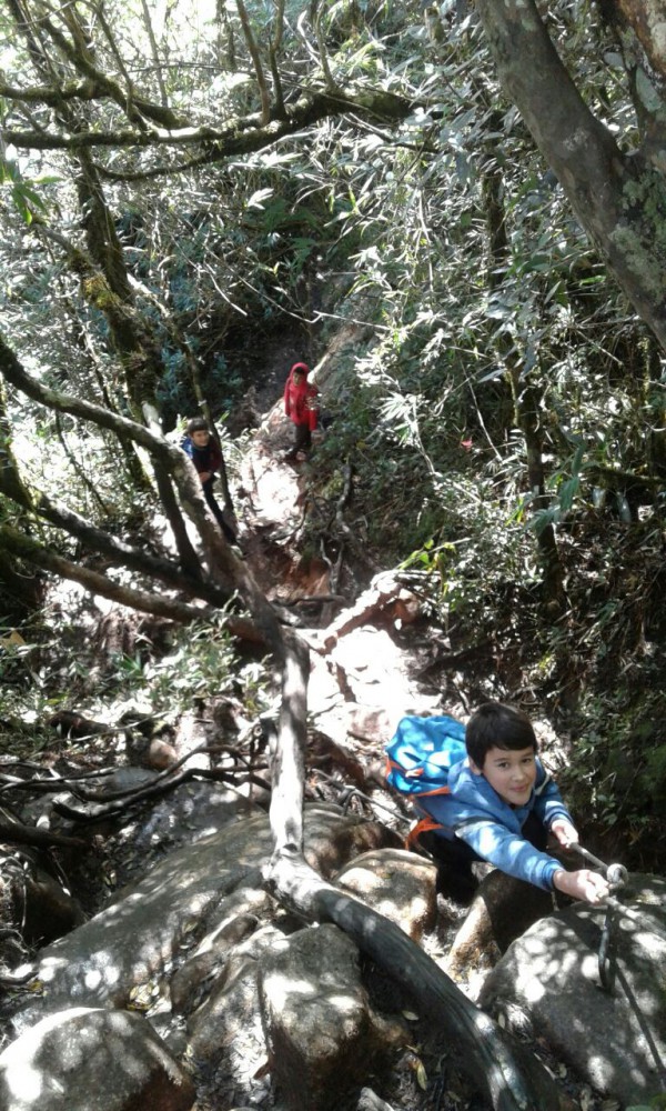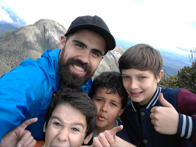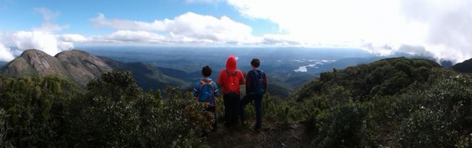 Logo chegará a terceira bifurcação, neste ponto, ambas levam ao Itapiroca, porém, a da esquerda é uma via trekking e a da direita é uma linha de escalada. Logicamente fomos pela esquerda, mas foi o suficiente para eles se sentirem verdadeiros alpinistas.Nossa chegada ao cume foi só festa.