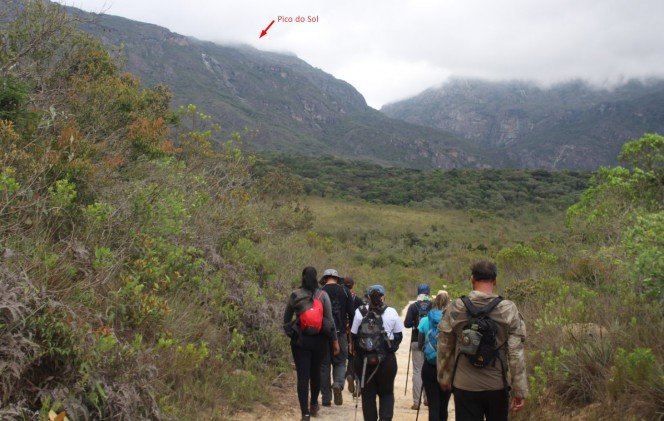 Novamente uma subida íngreme e logo se chega ao topo do majestoso Pico do Sol, o cume da Cadeia do Espinhaço, depois de percorridos pelo menos 10 km. Um misto de realização pessoal e visão transcendente permeia e envolve aqueles que ali chegam.
