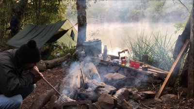 Acampamos em redes a 3ºC com direito a travessia do rio com água congelante.