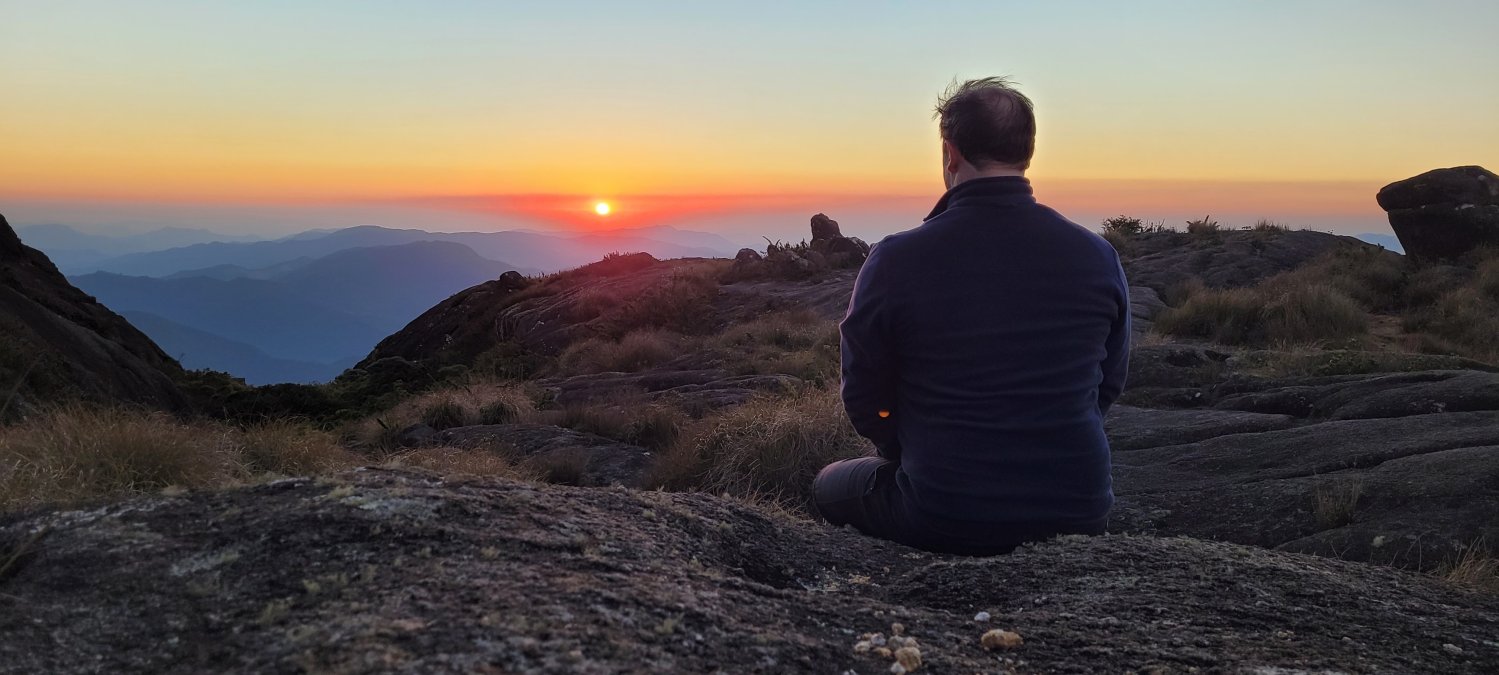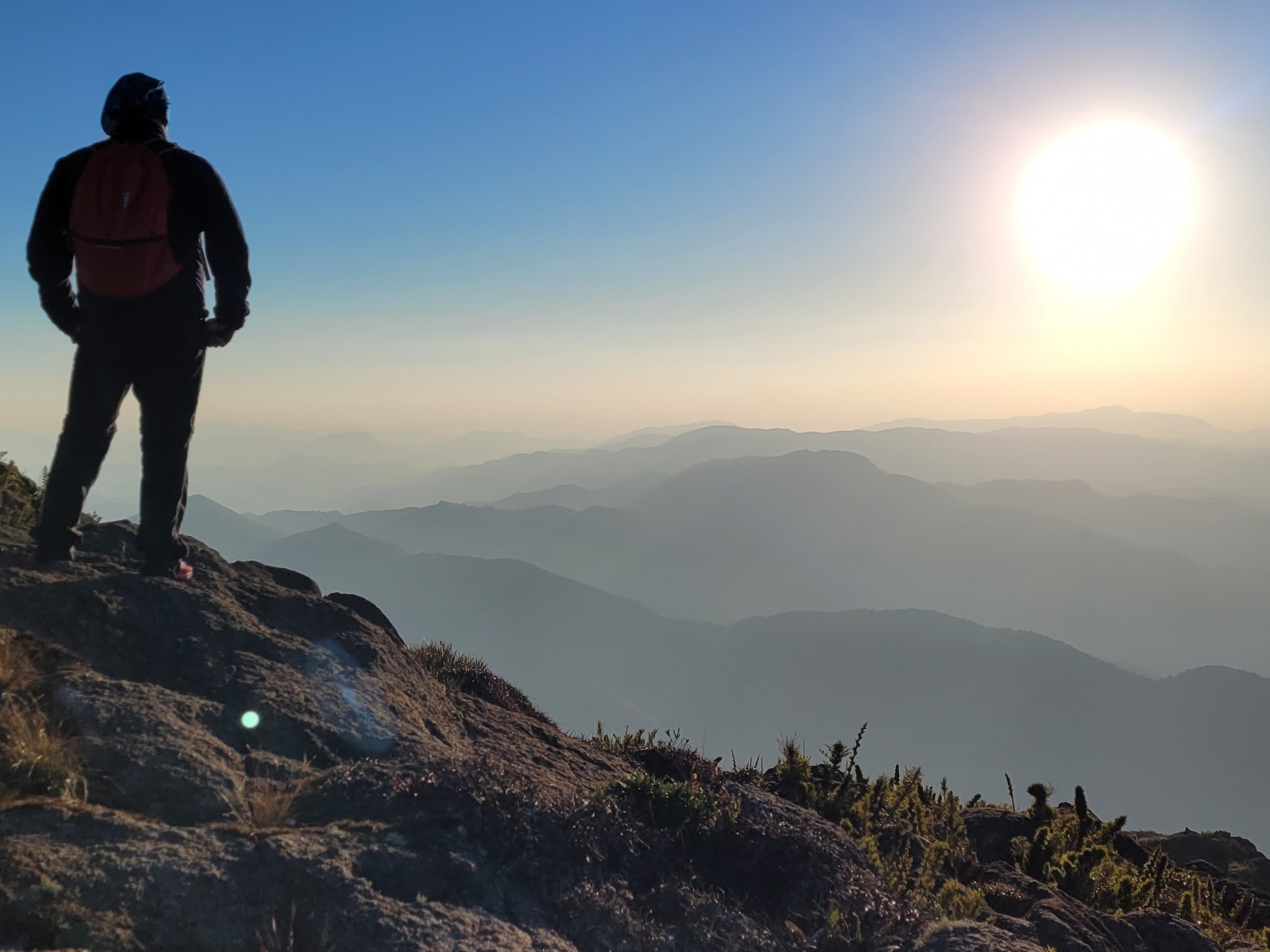 Registramos algumas fotos, fizemos o registro no livro de cume e retornamos ao acampamento, onde contemplamos um belo pôr-do-sol acompanhado do silêncio que buscamos na montanha.