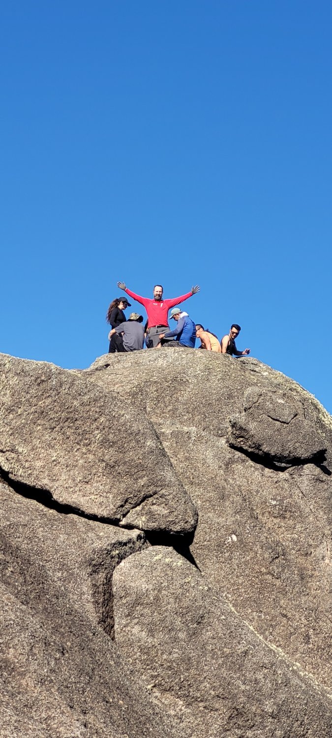 Seguimos até o cume da pedra redonda onde paramos para um pequeno descanso.