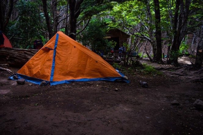 Armamos a barraca, deixamos nossas mochilas e fomos apenas com a mochila de ataque até o mirante Grey. Muito cuidado com as comidas deixadas nas barracas, a raposa-colorada (Lycalopex culpaeus) adora lanchinhos fora de hora.