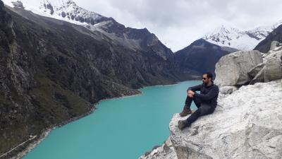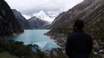 Conhecendo a Laguna Parón, frente a montanha que parece o logo da Paramount Pictures, mas não é. Ótima trilha para se aclimatar em Huaraz.