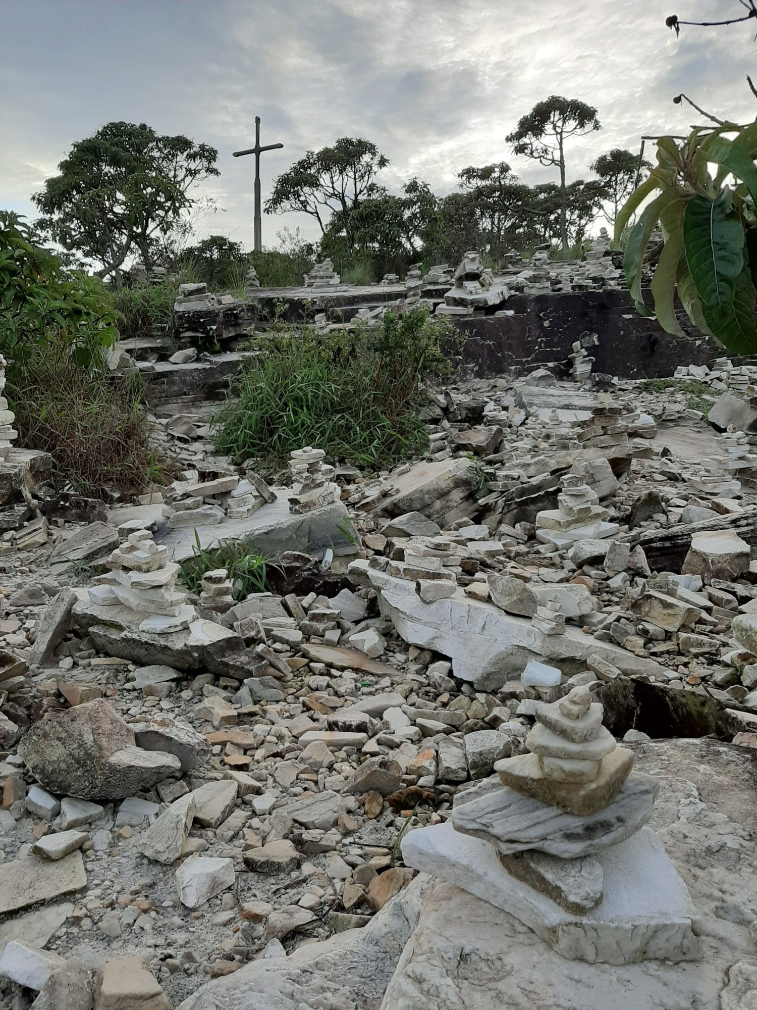 Depois fomos andamos até o cruzeiro e o monte de pedras que tem ali no parque Municipal Antonio Rosa. Montei o meu toten.