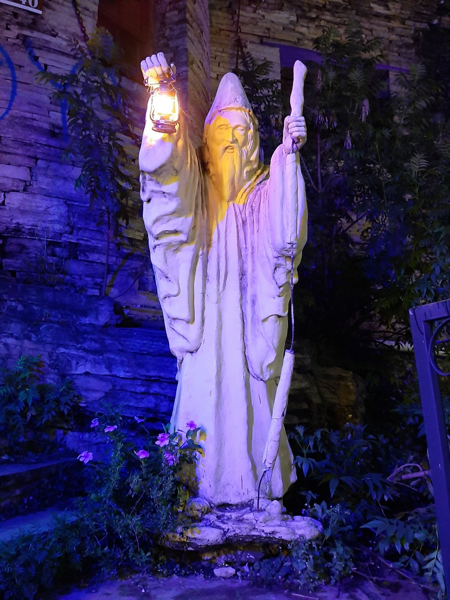 Fomos na gruta são thomé, depois andamos até a casa da pirâmide à noite. Era dia de lua cheia, mas o céu estava um pouco encoberto.