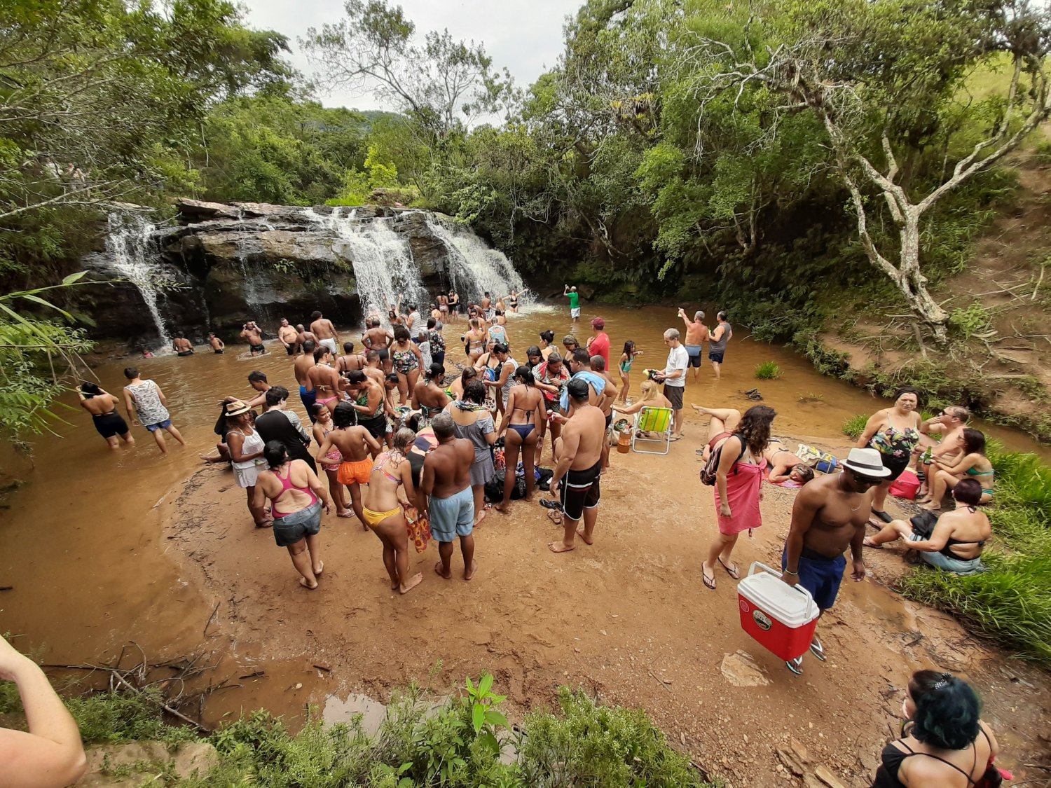 A cachoeira já não é muito grande e tinha muita gente fazendo rituais. Energia não estava a das melhores não. Nem entramos na água.