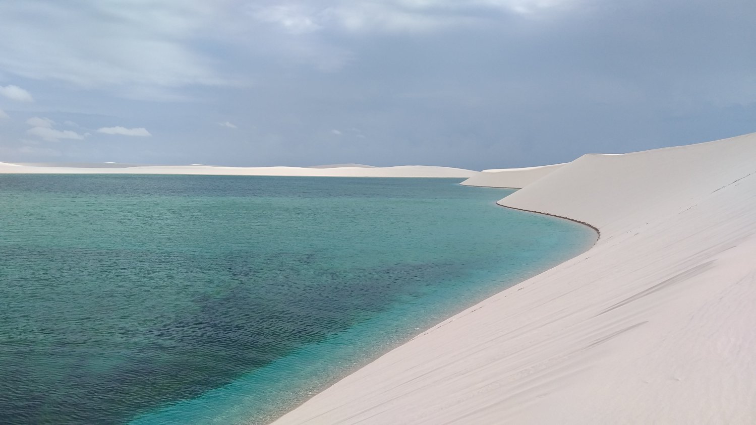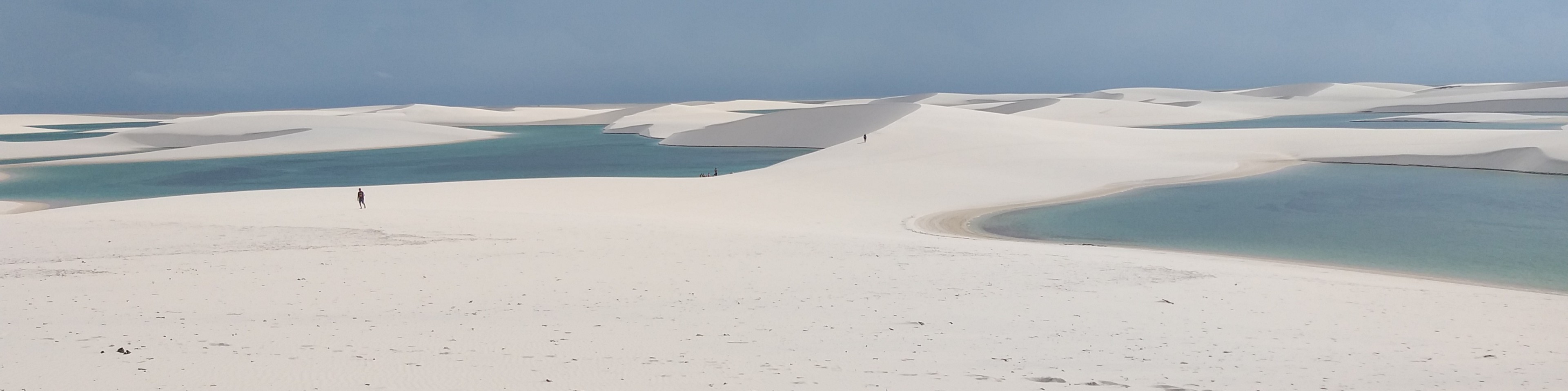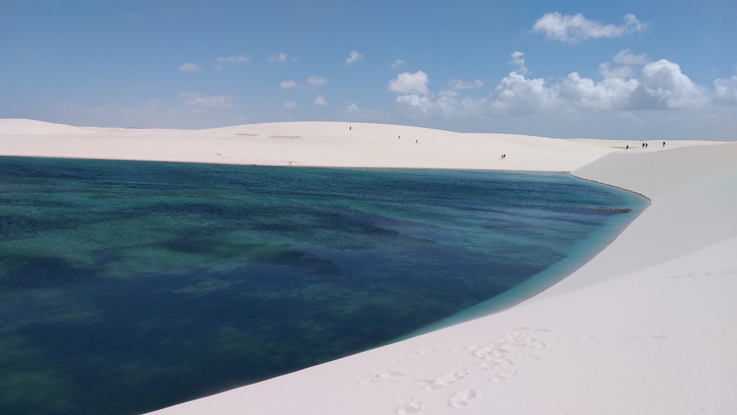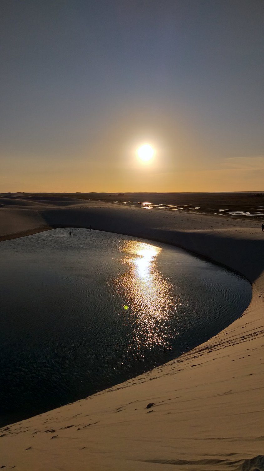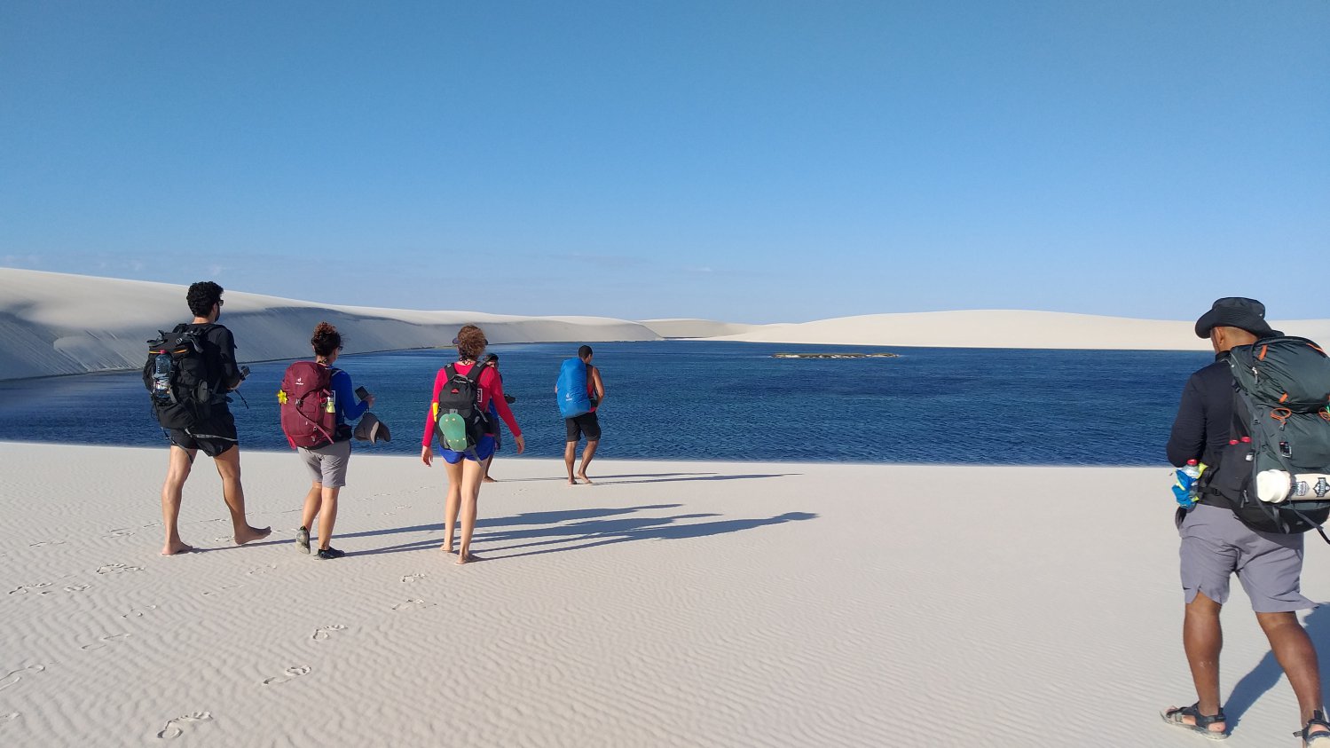 Esse trekking parece que se está atravessando um deserto, porém um deserto cheio de água doce. As lagoas são de água doce. Água de chuva na verdade.