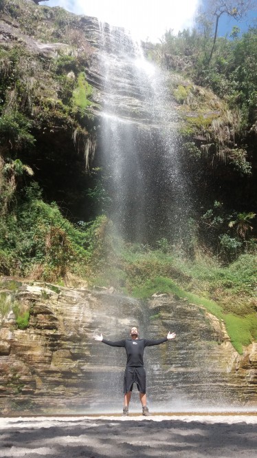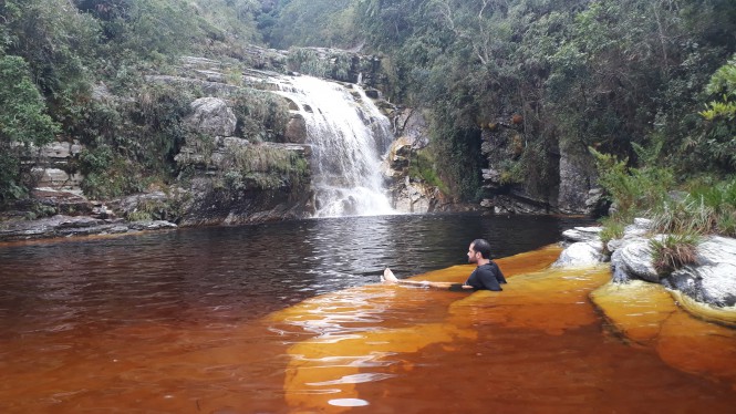 Saindo da janela do céu, com uma água um pouco gelada, fomos seguindo o caminho até que chegamos na cachoeirinha. Muito linda. Vale a pena perder um tempo ali. E a água não é tão gelada.