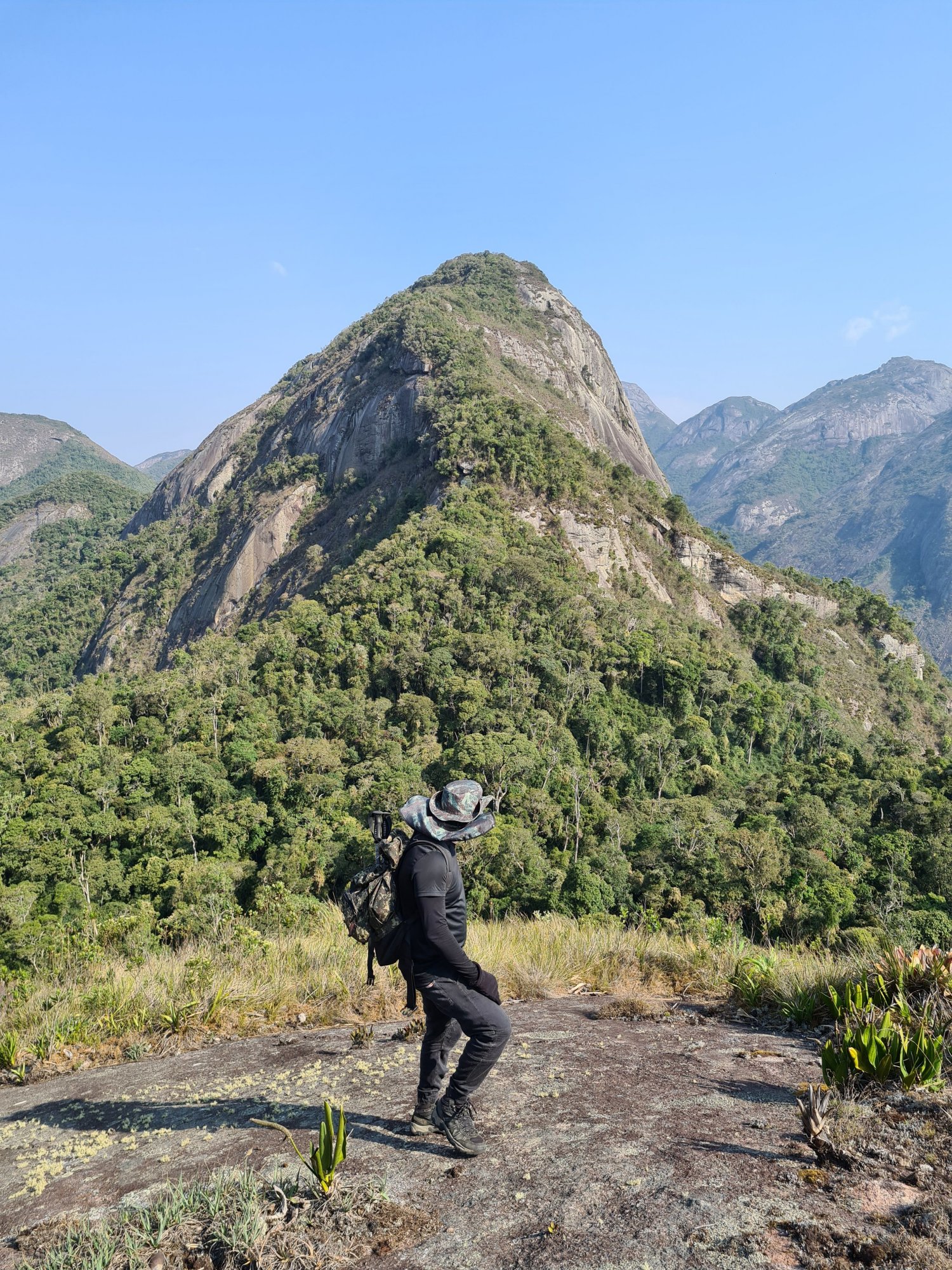 Situada na estrada que liga os municípios de Petrópolis e Teresópolis. A caminhada até o cume dessa montanha imponente não foi fácil. O dia estava quente e o ar seco, dificultando a ascensão. Em outra ocasião estive perto do Jacó, agosto de 2020 tive o prazer de conquistar o Pilatos, montanha vizinha do Jacó. Tinha uma ideia do que viria pela frente, a trilha que leva a essas duas montanhas é a mesma até um certo ponto. A primeira vez que estive no Pilatos, os moradores da região estavam proibindo a passagem até a montanha. Meu amigo Adriano alguns meses depois teve o trabalho árduo de abrir um novo caminho para não ter mais problemas com os moradores, possibilitando a nossa caminhada e a de outros montanhistas. Começamos a caminhada por volta das 08:30. Para chegar até a trilha do Jacó é necessário ganhar 4 morros bem exigentes.