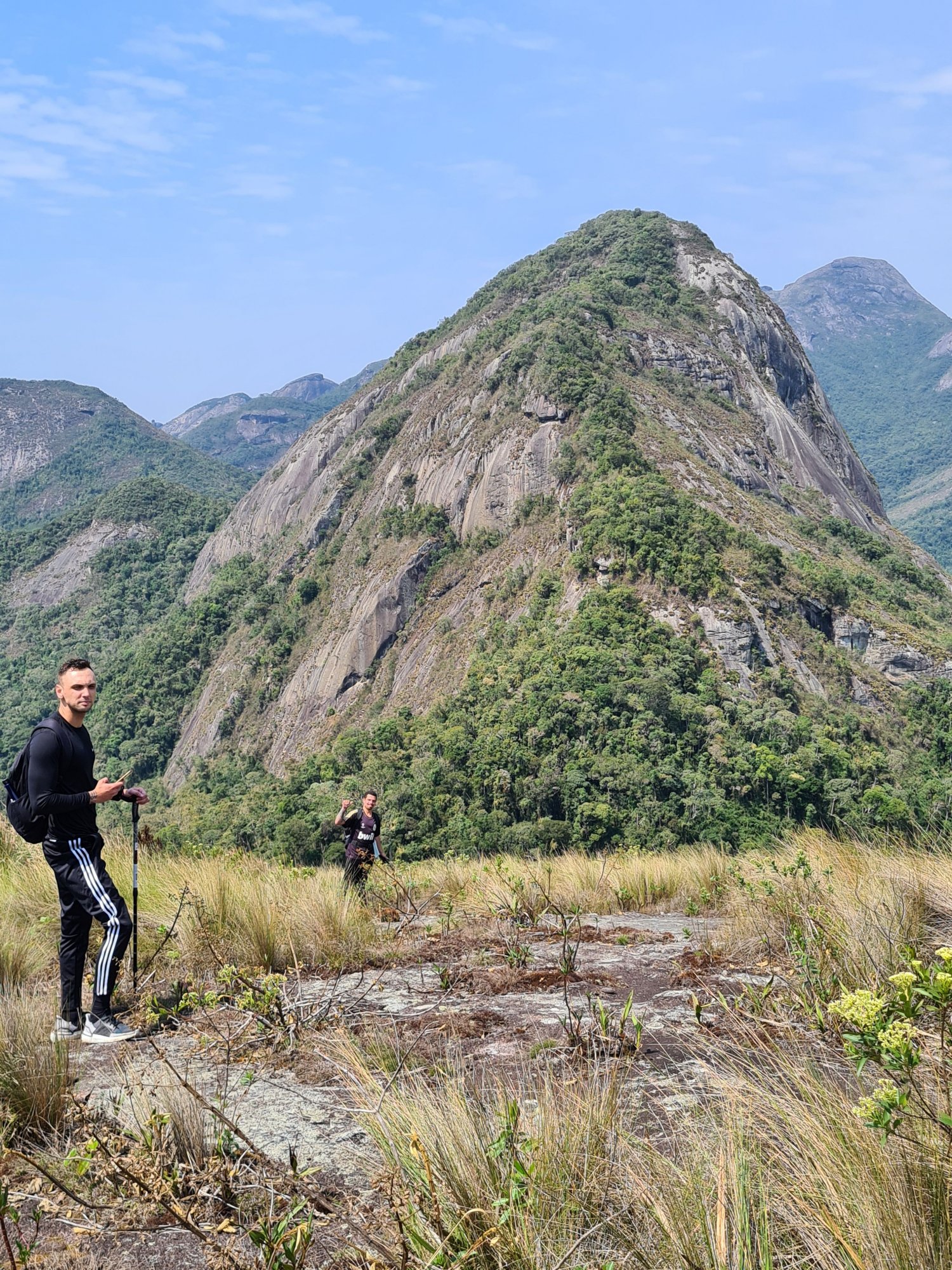 Subimos com calma para admirar a paisagem que é linda, levamos 2 horas para chegar a trilha do Jacó. Após ganhar os 4 morros e chegar a uma laje de pedra, começa a parte mais difícil da trilha. Capins com mais de 1,80 de altura embaraçam a trilha, dificultando a localização exata.