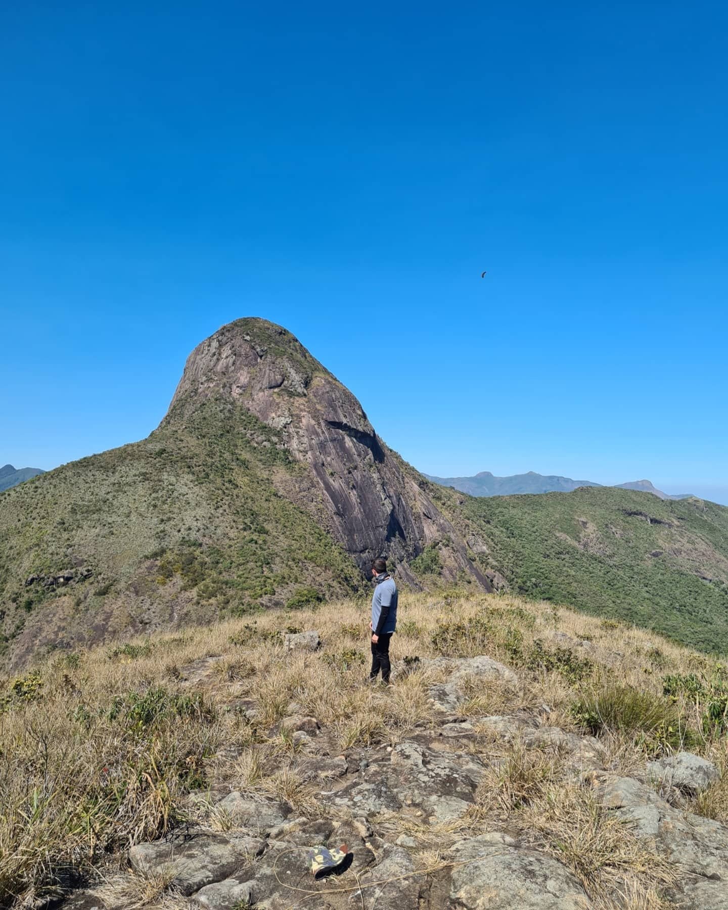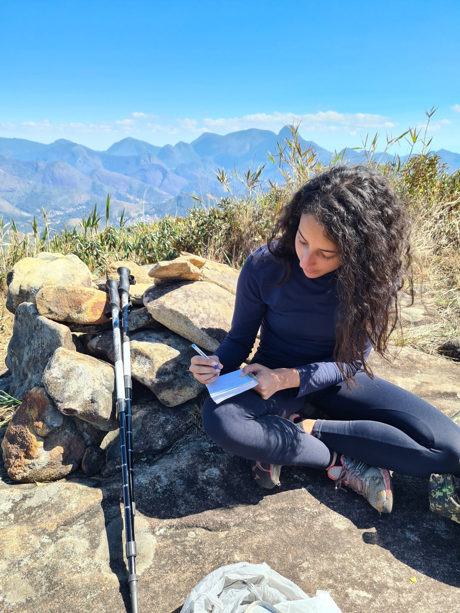 A subida é bem tranquila, leva uns 15 a 20 minutos até chegar ao cume. Bem a frente é possível admirar a paisagem e o imponente Alcobaça. Fazer um lanche e assinar o livro de cume dessa montanha que possui 1600 metros.