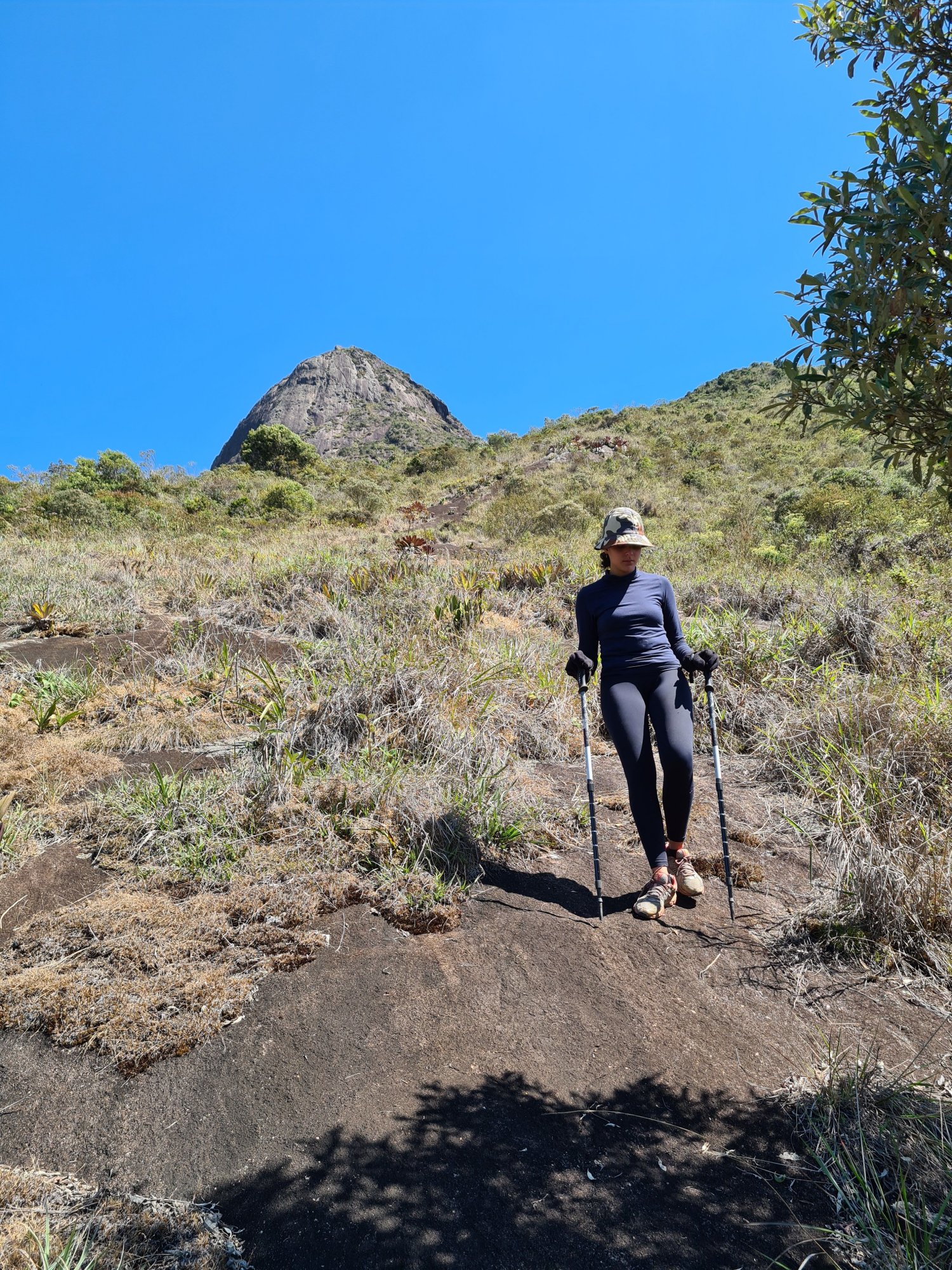 O começo é bem tranquilo, você vai acompanhar a calha da trilha que tá bem marcada. Ao chegar em uma pedra onde passa um corrego ( Atenção) pegue a direita e desça uns 3 metros, cuidado é bem escorregadio, descendo você encontra uma nova trilha a sua esquerda. A partir dai a trilha fica um pouco fechada, samambais e espinhos, o ideal é ir de calça e camisa de manga comprida. Passando essa parte mais fechada da trilha, encontrará uma lage de pedra com alguns totens. Nessa parte a caminhada fica um pouco mais desafiadora, com uma subida bem exigente. O visual começa a ficar lindo e ao subir você se depara com o imponente Alcobaça, bem em cima de você. No final dessa subida, vai ter um vale a direita que ligará até a subida final para alcançar o cume da Mãe D'água.