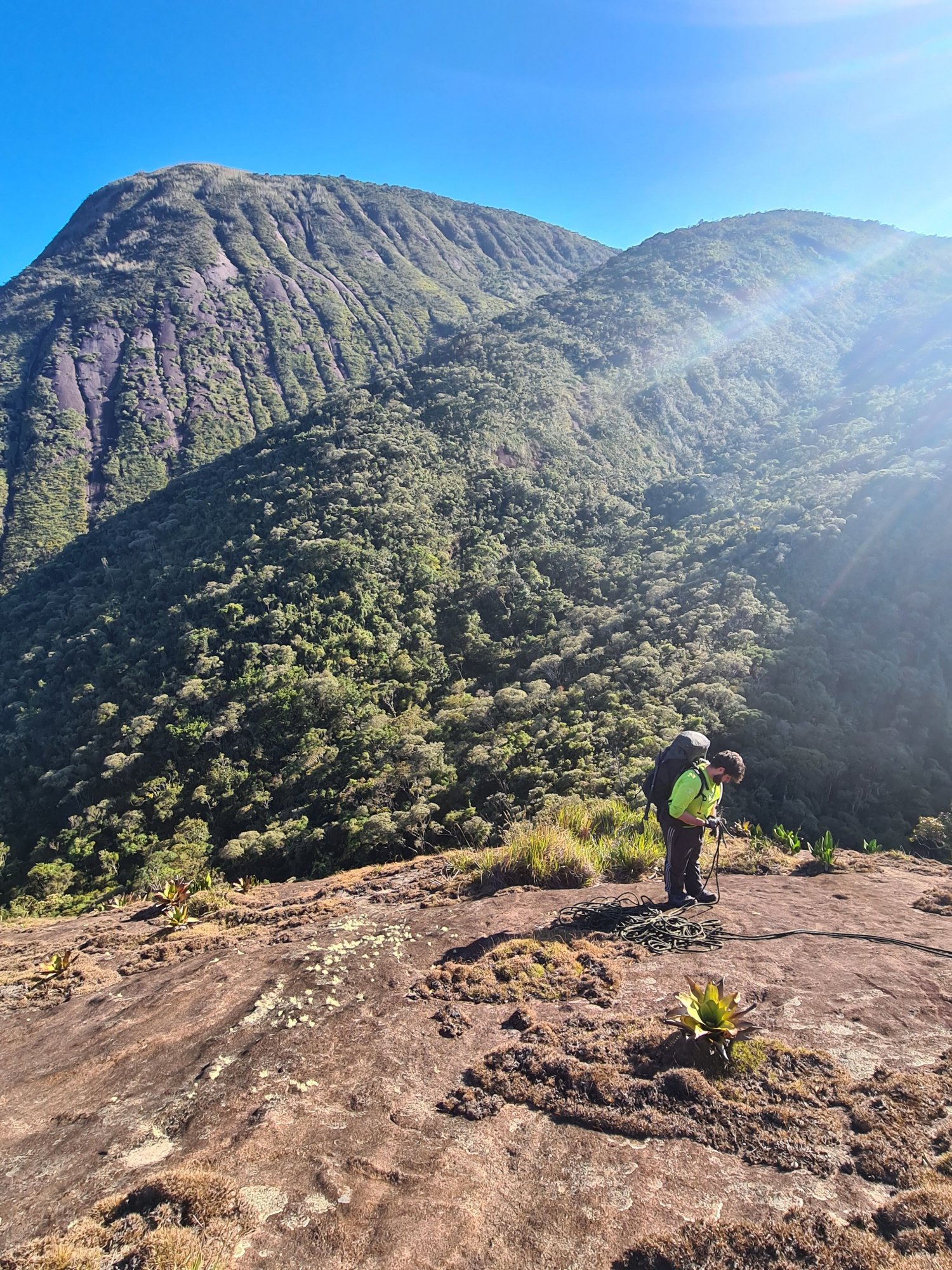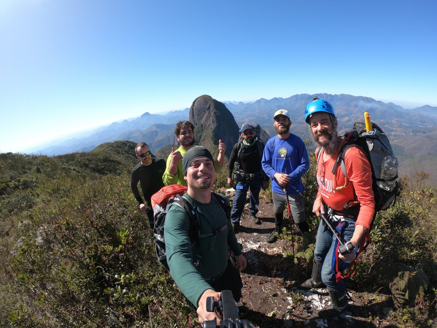 Depois desse ponto, andamos mais uma hora para chegar até o cume principal da Serra das Antas. Chegando ao cume principal, você se depara com a colossal Maria Comprida. A paisagem é simplesmente incrível, podendo observar praticamente todas as montanhas da cidade de Petrópolis. Tivemos uma surpresa no cume, encontramos Marcelo de Figueiredo. O guia que levou João Pedro na sua primeira ascensão, além de ser super gente boa, conhece essas montanhas como a palma da sua mão.