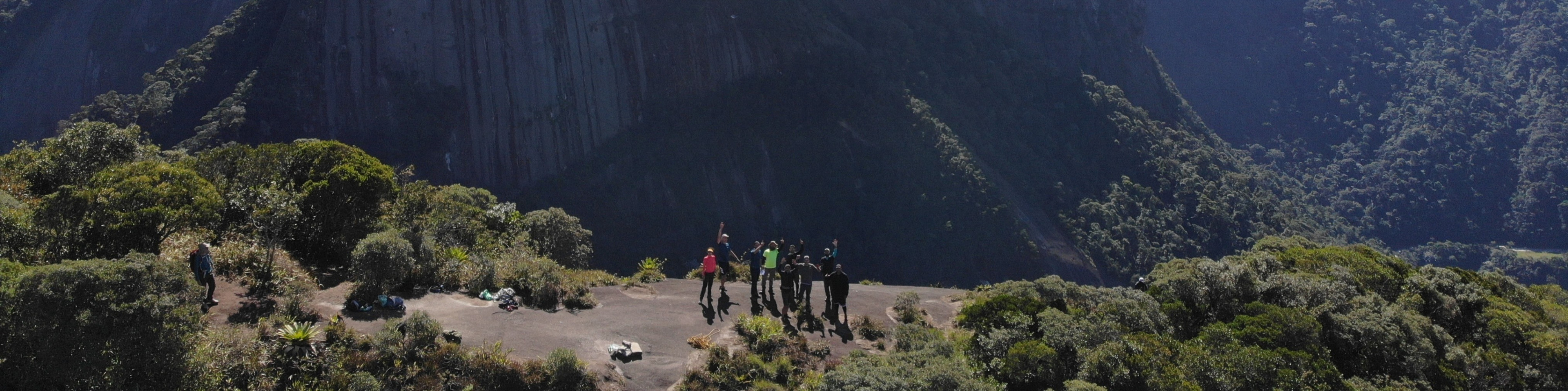 Visão do drone da face do Escalavrado voltada para Guapimirim.