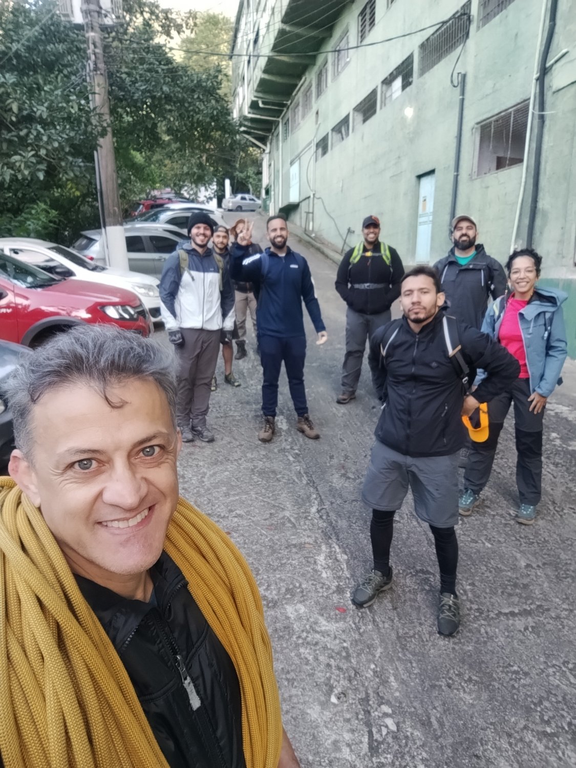 Com paciência e sem pressa, passamos pelos obstáculos. Todos demonstraram grande desenvoltura. Às 16:30 chegamos na estrada e subimos até o estacionamento. Terminamos com o dia anoitecendo. Ali sim, pudemos celebrar a realização completa do objetivo em segurança e com muitas estórias para contar.