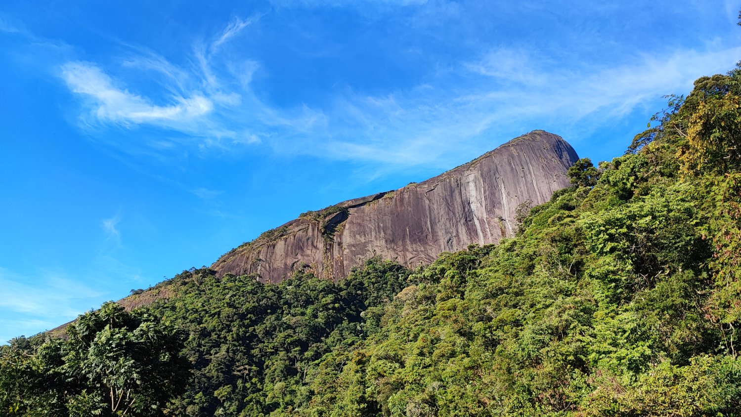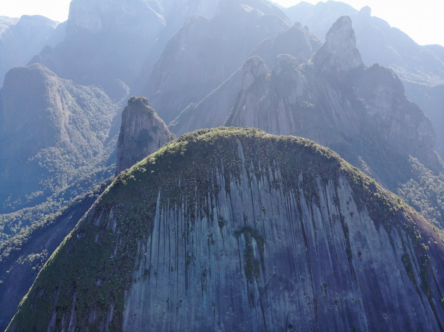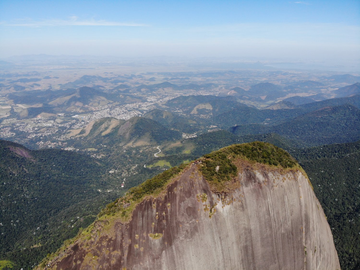 Visão do drone da face do Escalavrado voltada para Guapimirim.