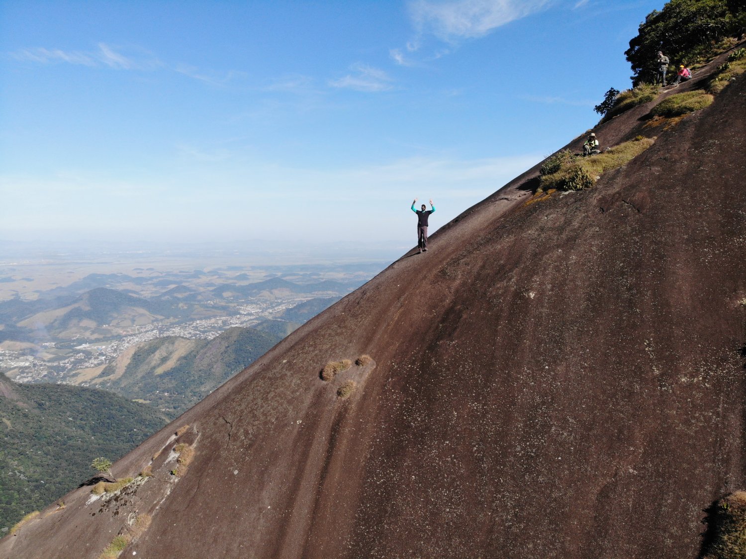 Houve cumprimentos mútuos, ligações telefônicas para comprovar aos que ficaram em casa duvidando se alguns conseguiriam e, claro, fotos, muitas fotos e vídeos. O vento, milagrosamente, diminuiu consideravelmente com a mudança para a tarde, o que permitiu ao Caio pilotar seu drone e documentar nossa posição naquele ínfimo ponto diante da grandeza da montanha.