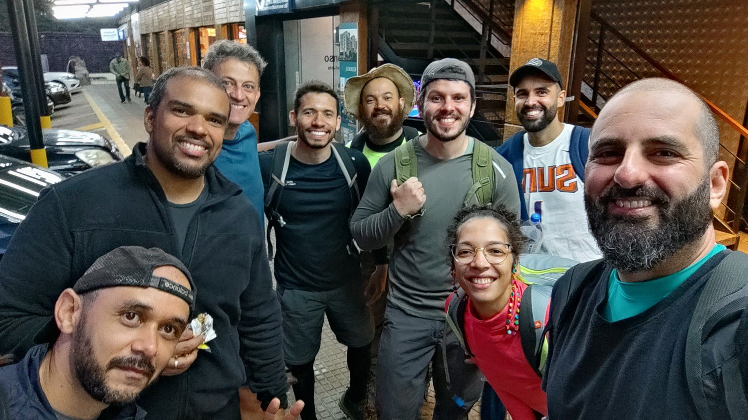 Após tantas remarcações, conseguimos acertar a data, dia 08 de julho de 2023, um sábado. A lista de interessados em participar havia aumentado. Um comentou com outro, que comentou com outro... a rede foi se ampliando e, no final, contando comigo, éramos nove. O casal Ariane e Caio, Boechat, Daniel, Eduardo, Pablo, Silvênio e Vinicius se candidataram. Exceto pela Ariane, todos trabalhamos na mesma empresa, ainda que alguns em instalações e gerências diferentes.