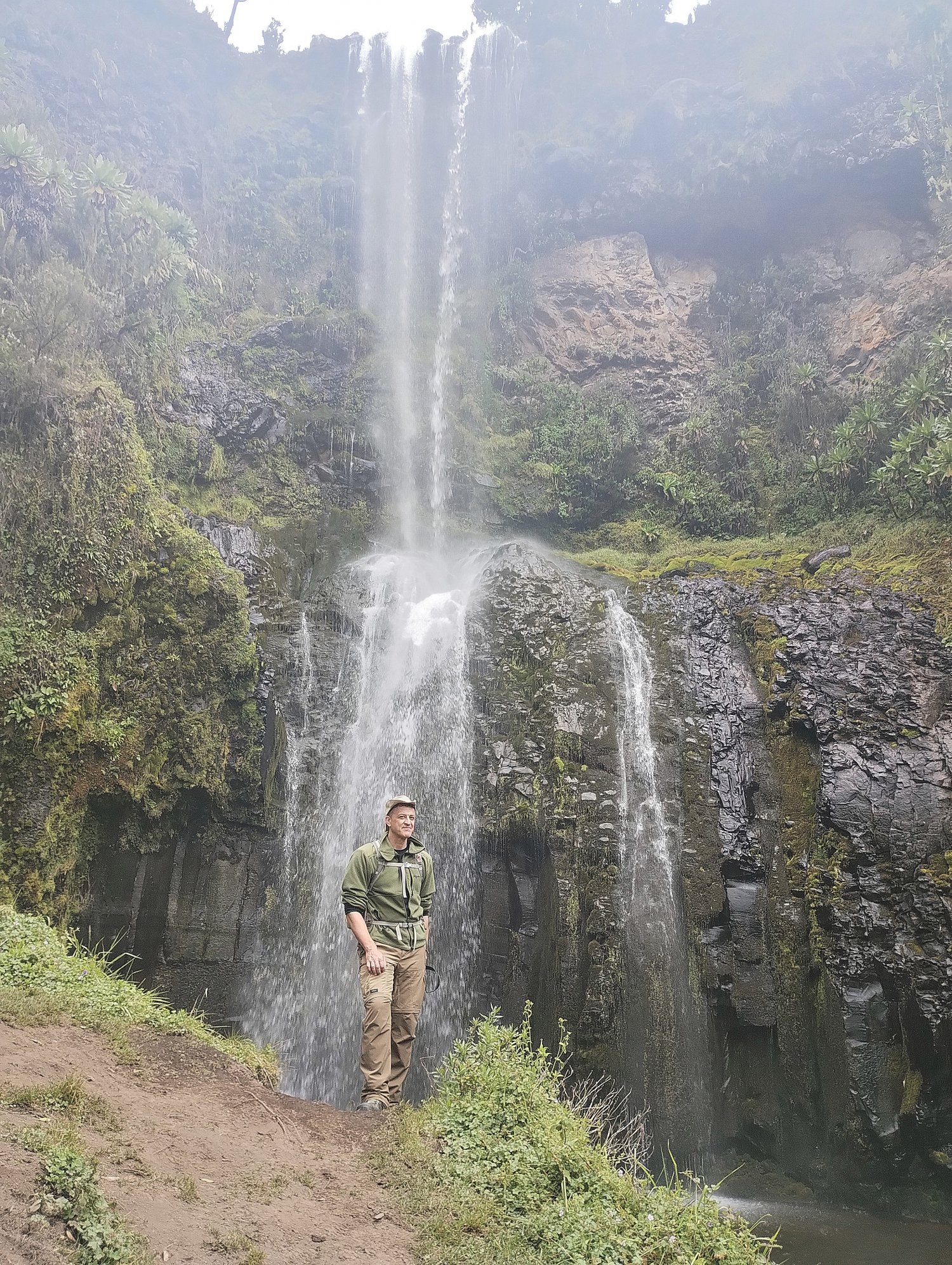O segundo dia de caminhada se iniciava neste templo de divindades e eu via do primeiro acampamento a 2.950 metros de altitude aquela distante muralha que alcançava praticamente os 5.200 metros. O momento de executar a última etapa de um longo processo, de se alcançar o ponto culminante da última montanha na África com mais de 5.000 metros se aproximava, o que me causou uma extrema ansiedade (eu já havia alcançado o cume do Kilimanjaro - 5.895m e Rwenzori - 5.109m em 2011 e 2015, respectivamente).