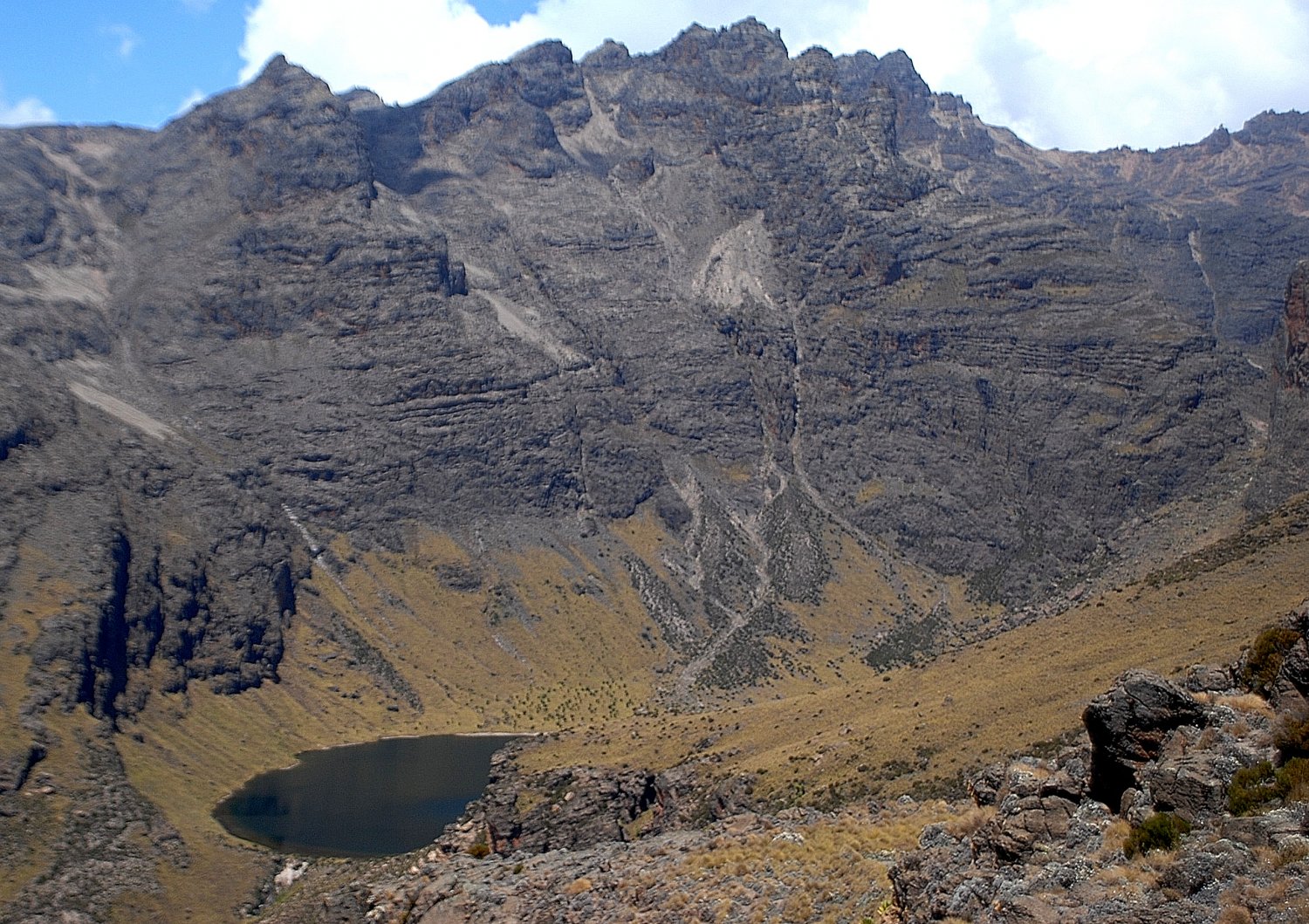 O Lago Michaelson, situado no Vale Gorges, o cânion mais profundo do Mt. Kenya.