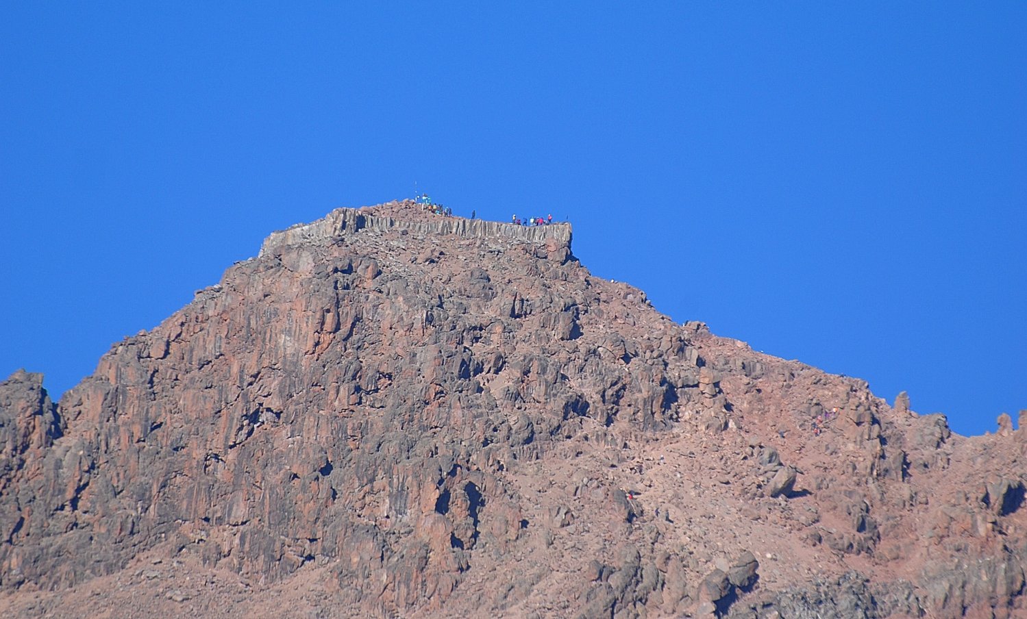 Do alto do cume, alcançado cerca de uma hora e meia após deixarmos o abrigo, pude absorver cenas memoráveis em um raio de aproximadamente 40 km. Incrível como o degelo pelo aquecimento global havia provocado uma enorme retração no glaciar Lewis, o último grande representante nevado no local. Se comparar então como uma foto de 1958 que consegui na internet, aí é que as coisas ficam mais gritantes. Só sendo muito incrédulo para não se perceber os efeitos do aquecimento global.