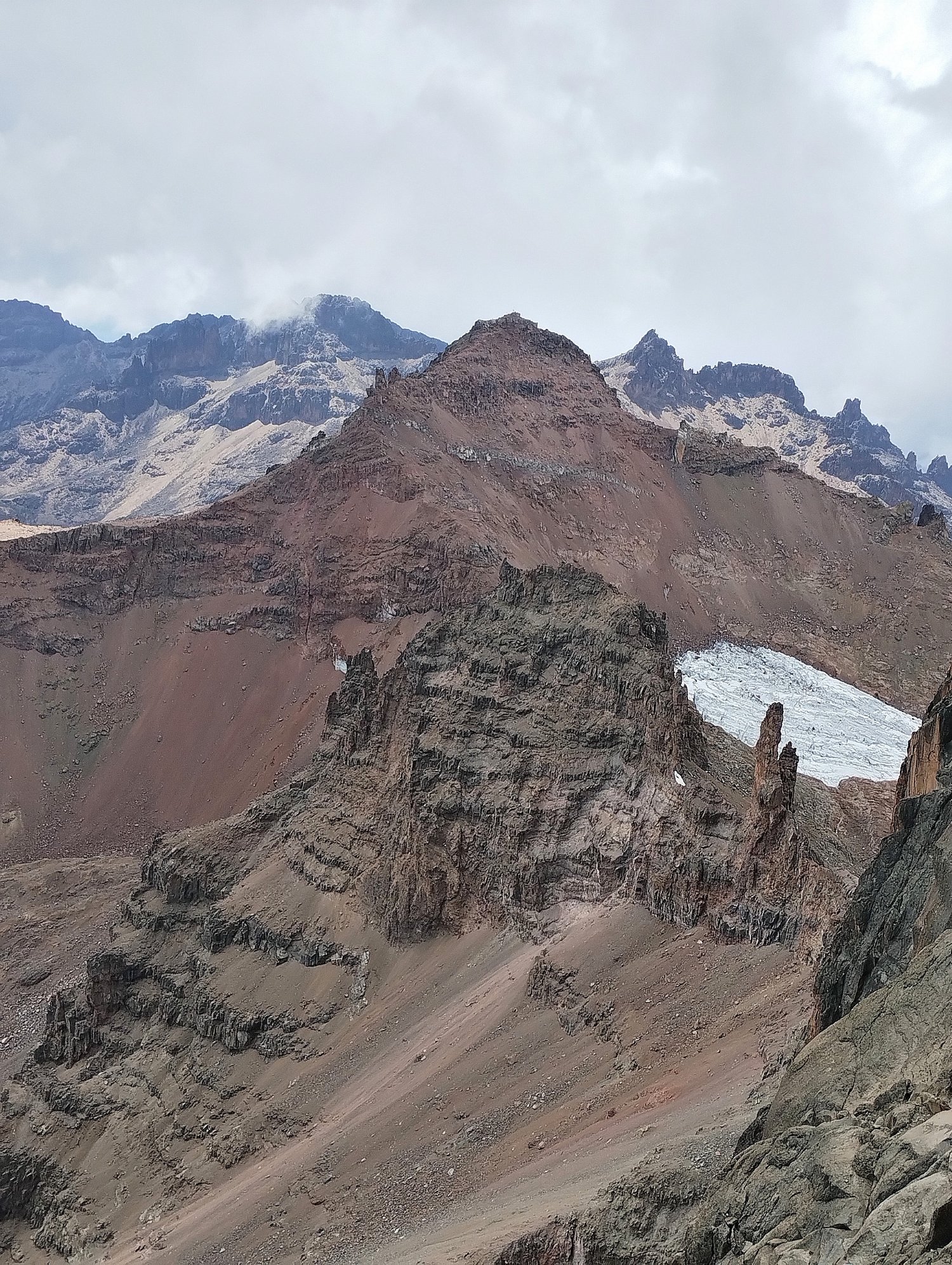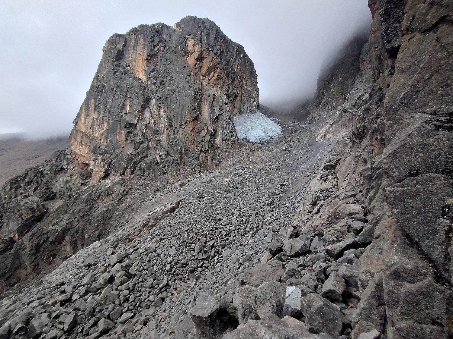 O resquício do glaciar Gregory, o segundo que visualizei. Está com seus dias contados. Houve mais de vinte glaciares relatados ao longo da história do Mt. Kenya.