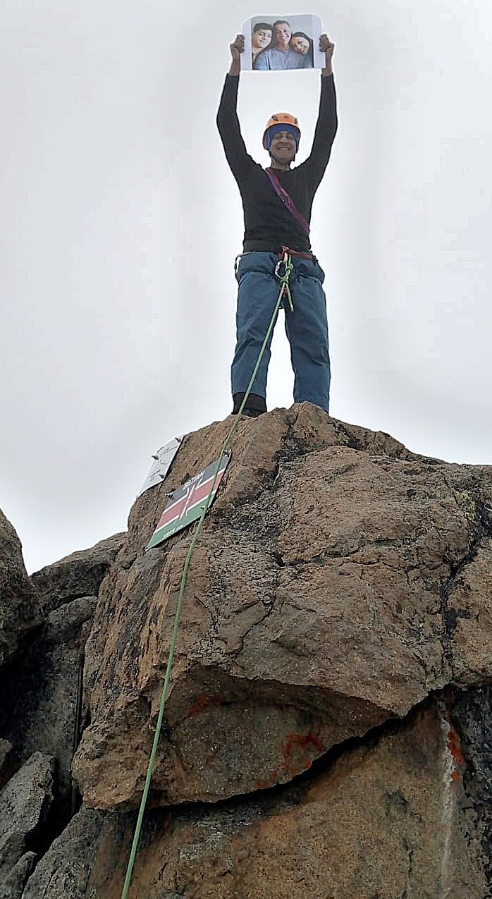 Avancei confiante e, poucos minutos depois, eu estava no topo do Batian às 11:50, ponto culminante do Monte Kenya, segundo ponto mais alto de toda a África. Rendi minhas homenagens, a principal delas, aos meus filhos. Pensei em muitas pessoas que estavam ou estiveram presentes em minha vida.