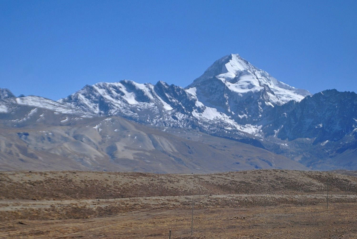 Paramos em El Alto para que nosso almoço fosse comprado. Havia mais cachorros nas ruas do que pessoas. Logo que voltamos ao percurso, deixamos a cidade para trás e a paisagem era árida, mas belíssima.