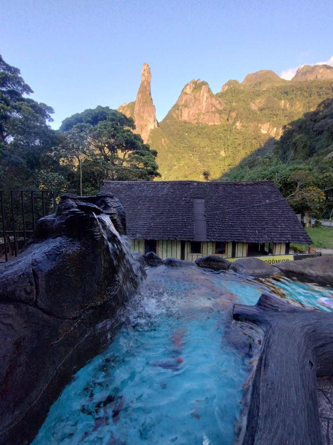 Coleta de água na saída. Se eu soubesse que na caminhada de aproximação teria água (a única das quatro montanhas em que isto é possível na trilha de acesso à base), eu não teria saído carregado. O dia prometia ser esplêndido.